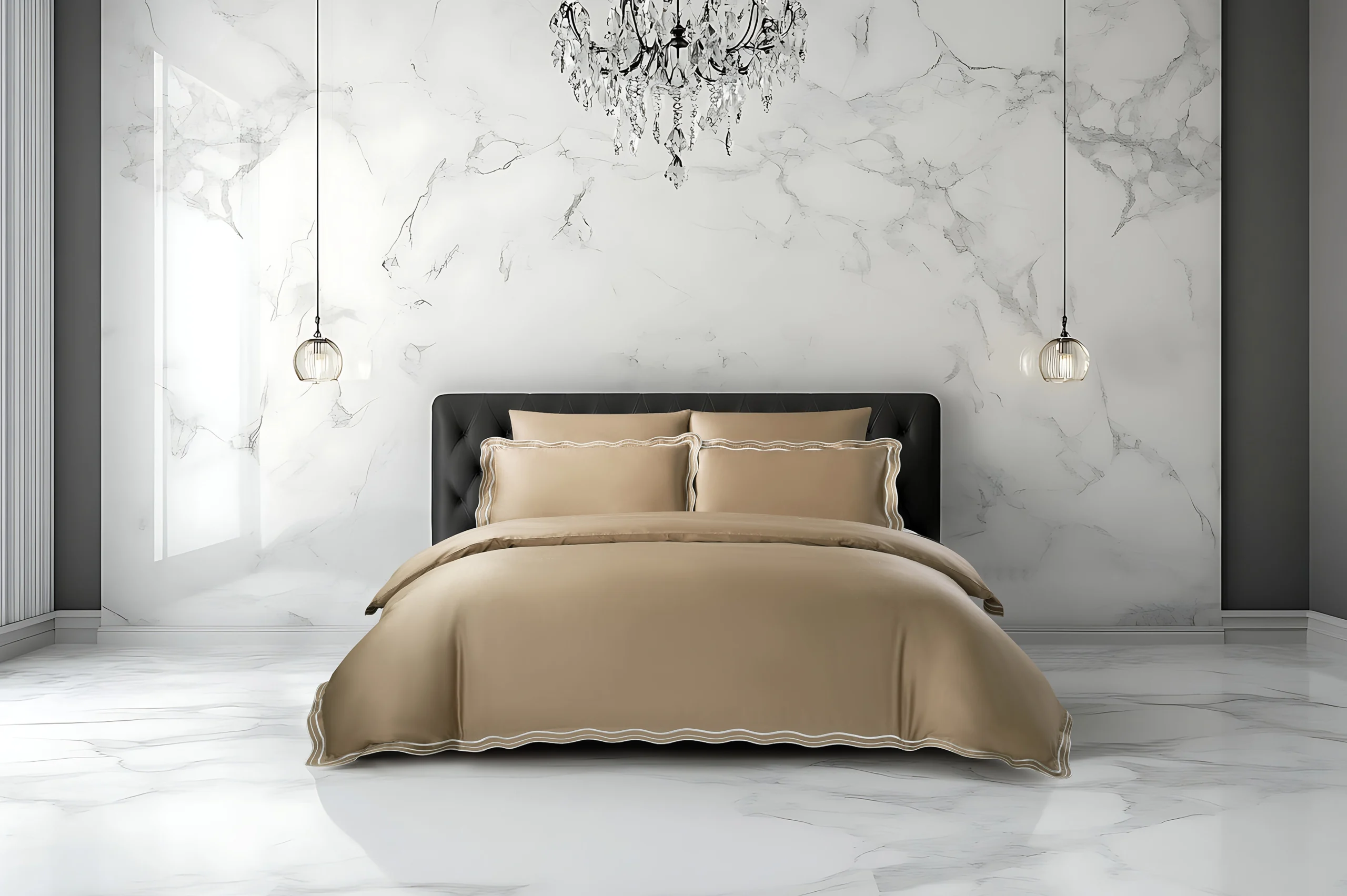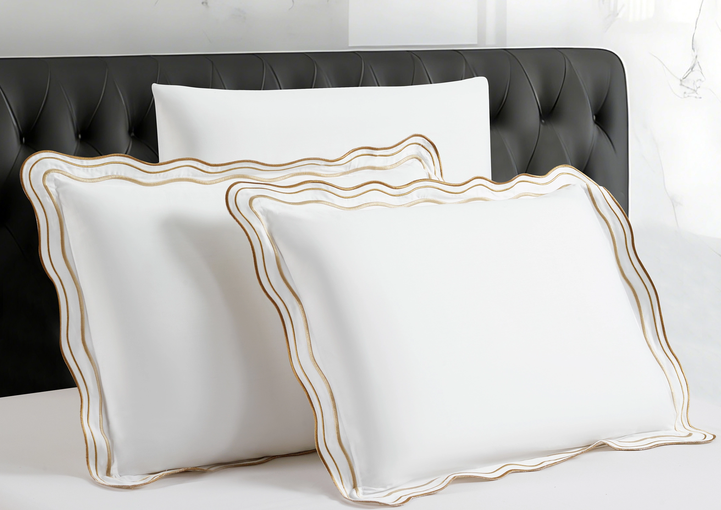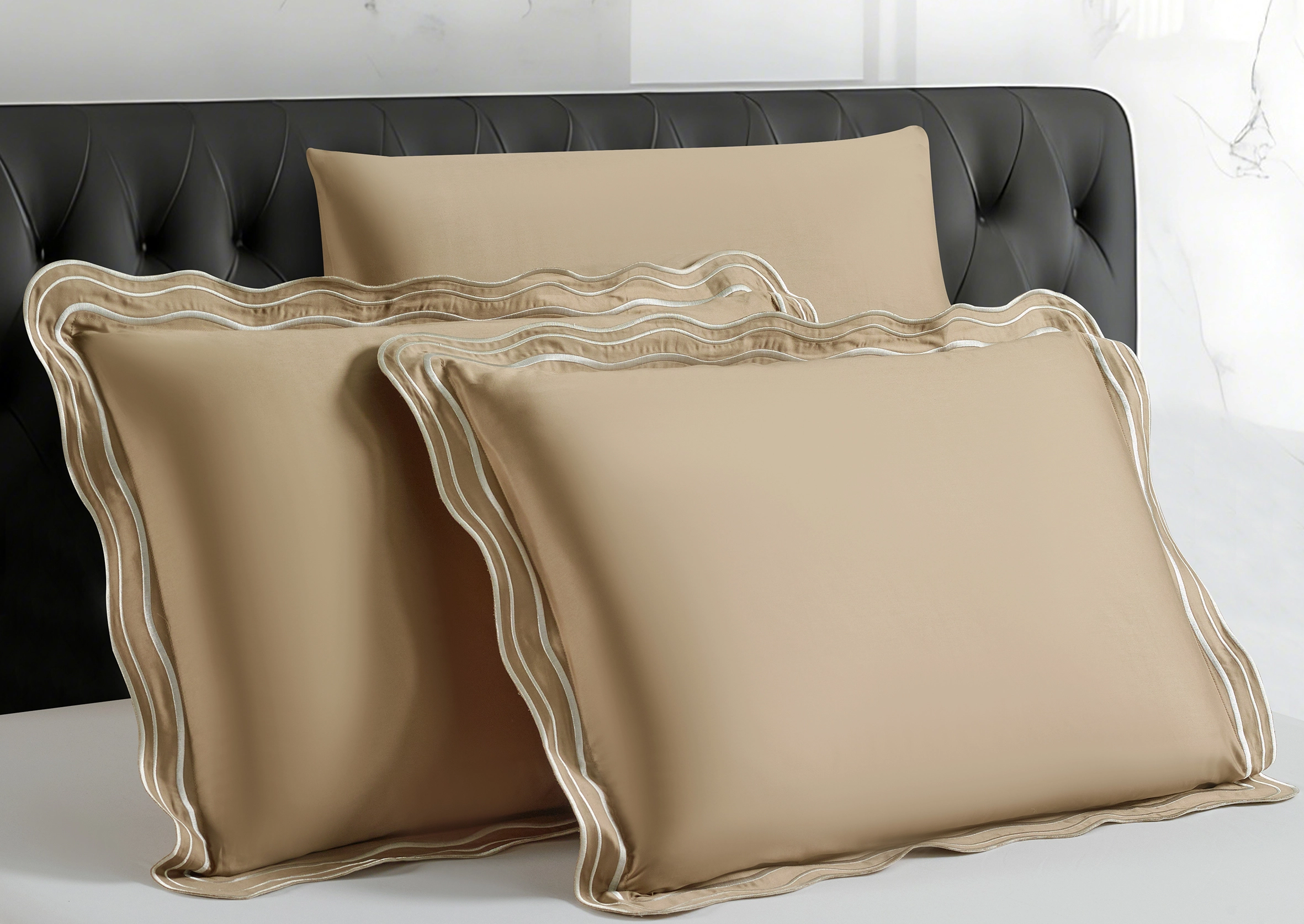 מערכת מצעים עשירה ויוקרתית מבית אמיטקס בעיצוב אלגנטי ויוקרתי אשר עוצבה ע"י מעצבת הבית. עיצוב הסט משלב רקמה מודרנית בגימור גלים בציפה ובציפיות על גבי בדים בצבעים עדינים ואלגנטיים. עיצובו העדין עם דוגמתו היוקרתית הופכת אותו בחירה מושלמת לחדר השינה האולטימטיבי ומעניקה מראה חדשני לסט ולחדר השינה. הסט עשוי מבדי 100% סאטן כותנה איכותיים במיוחד ובצפיפות חוטים גבוהה 300/TC.