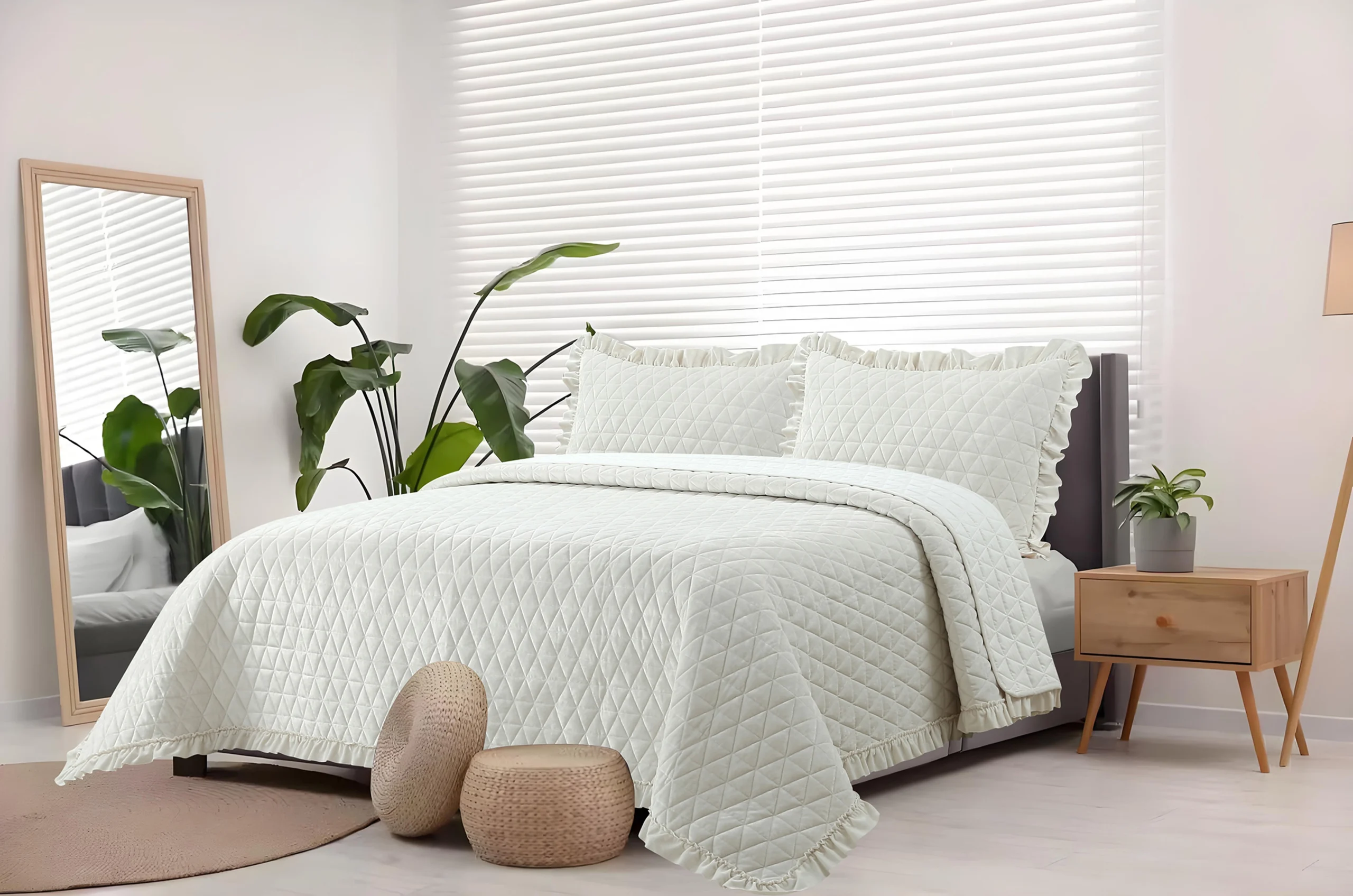 המשלבת תפירות “קווילט” על הכיסוי והציפיות ובגימור וולן מלמלה בצבעים