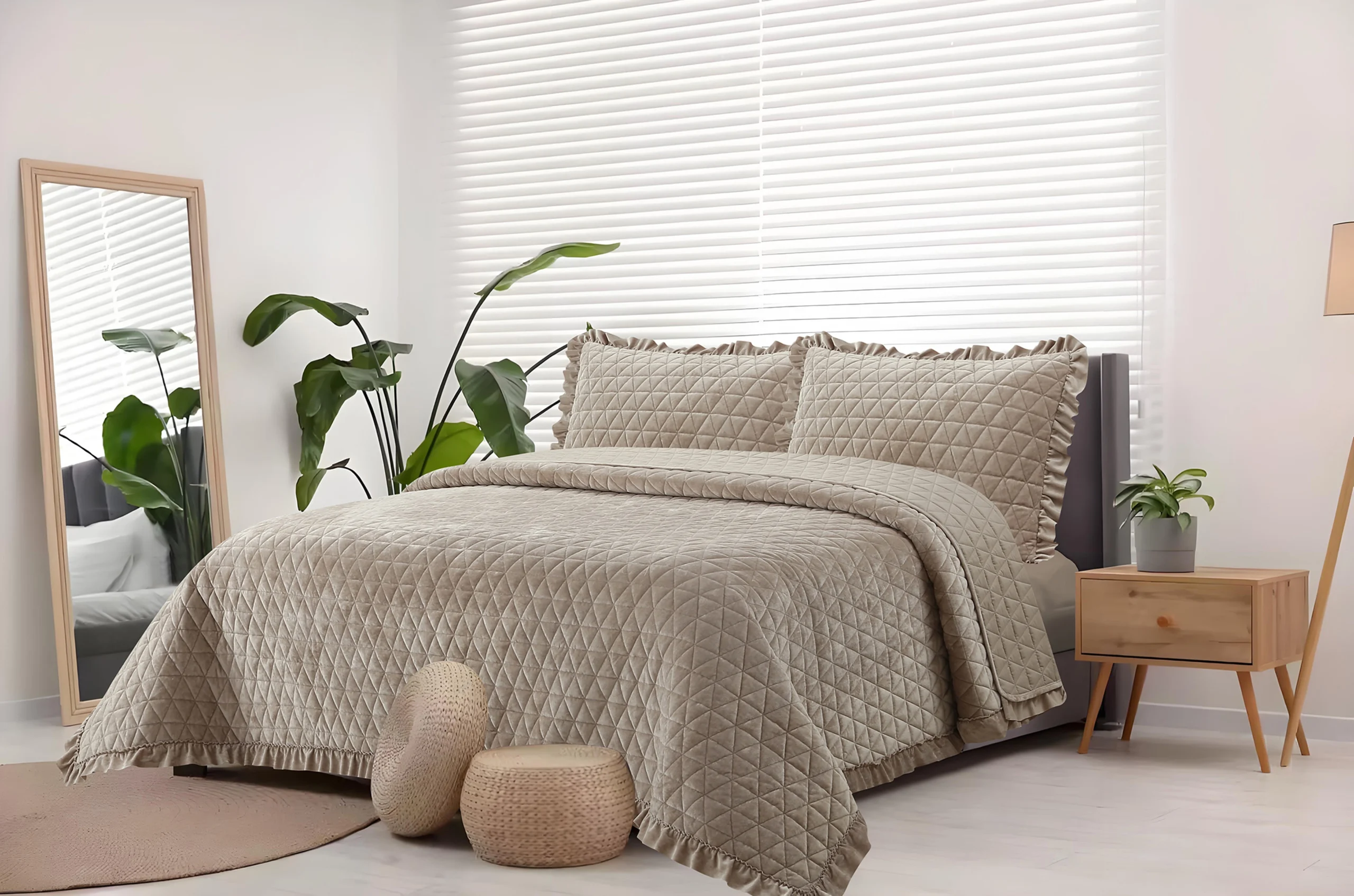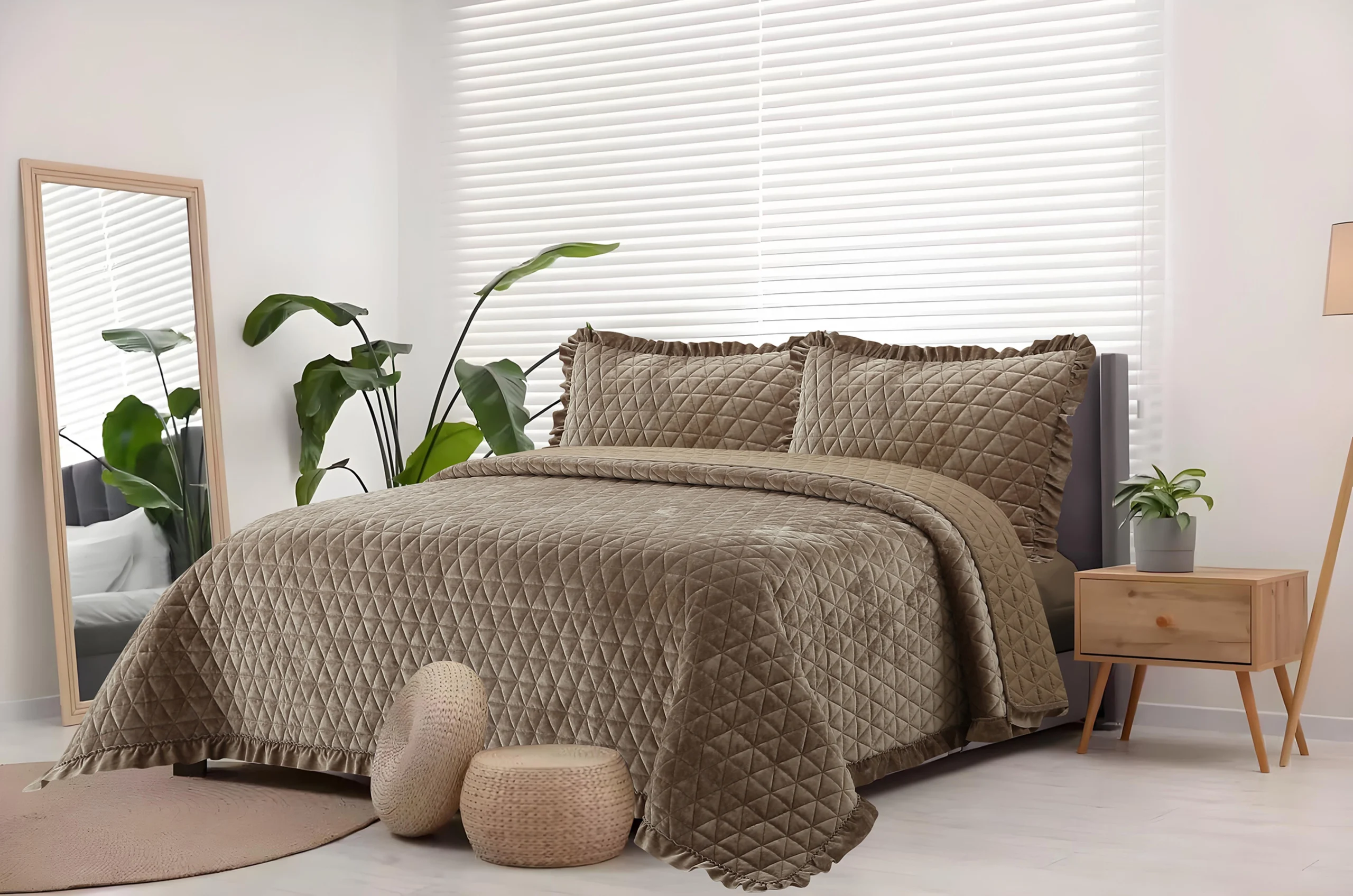כיסוי מיטה עשיר ויוקרתי מבית אמיטקס עשוי מבדי קטיפה מלכותית