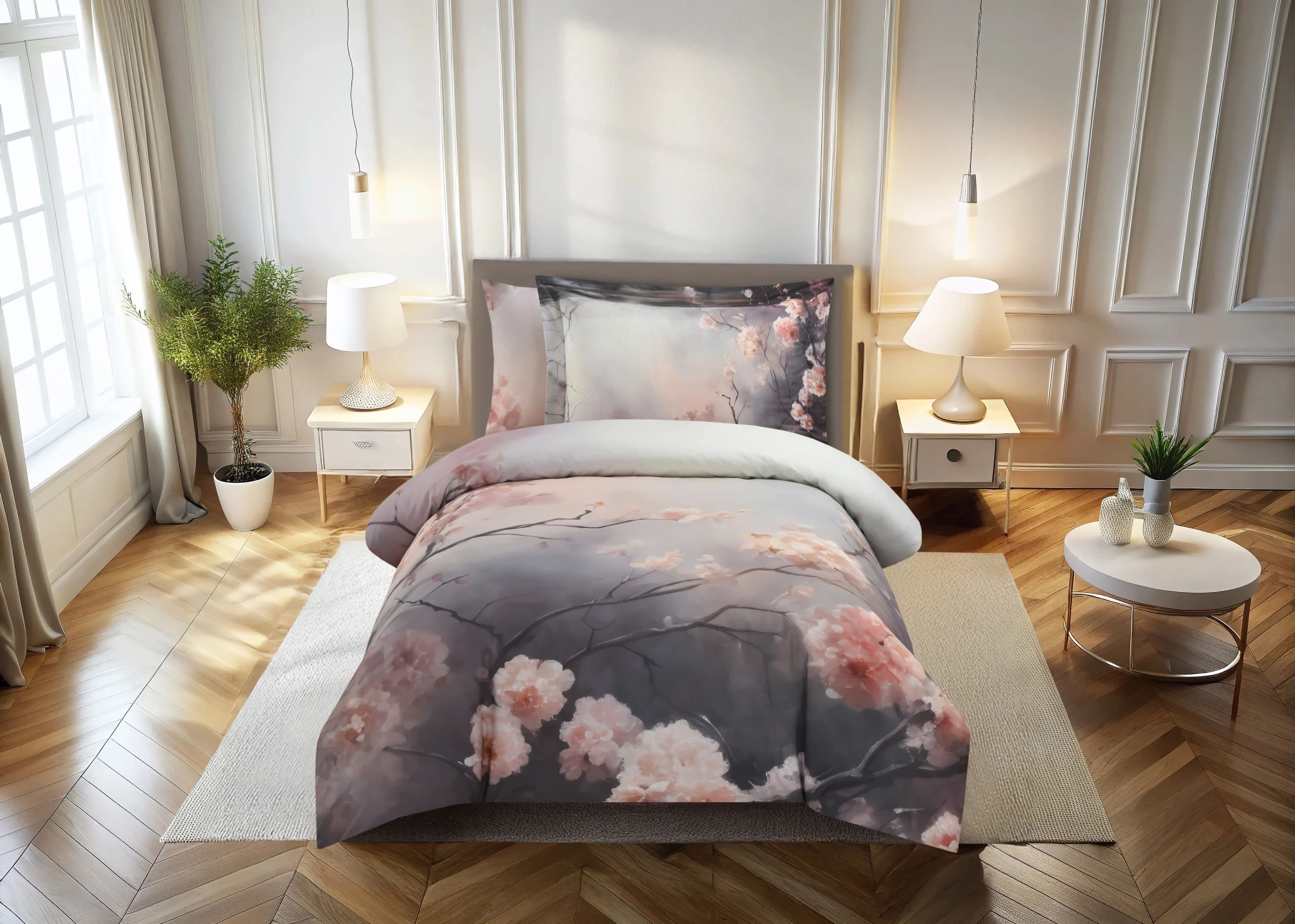 סט מצעים יוקרתי עשוי מבדי פרקל כותנה איכותיים בצפיפות חוטים גבוהה 200TC/ בדפוס דיגיטלי ייחודי. ציפיות הכריות מעוטרות בקלפה או בתחרה.