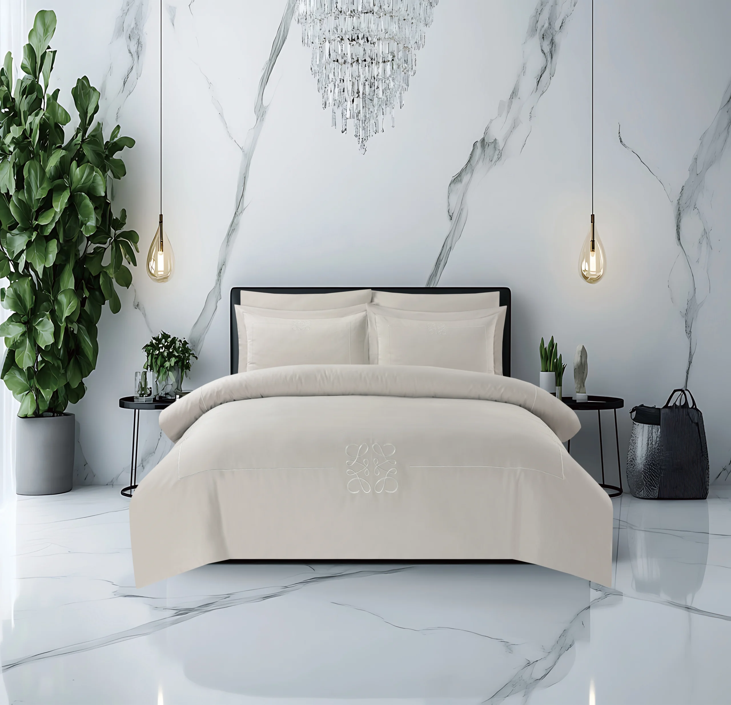 מערכת מצעים עשירה ויוקרתית מבית אמיטקס בעיצוב אלגנטי ויוקרתי אשר עוצבה ע"י מעצבת הבית. עיצוב הסט משלב רקמה מודרנית בציפה ובציפיות על גבי בדים ב בצבעים עדינים ואלגנטיים. עיצובו האופנתי עם דוגמתו היוקרתית הופכת אותו בחירה מושלמת לחדר השינה האולטימטיבי ומעניקה מראה חדשני לסט ולחדר השינה. הסט עשוי מבדי 100% סאטן כותנה איכותיים במיוחד ובצפיפות חוטים גבוהה 300/TC