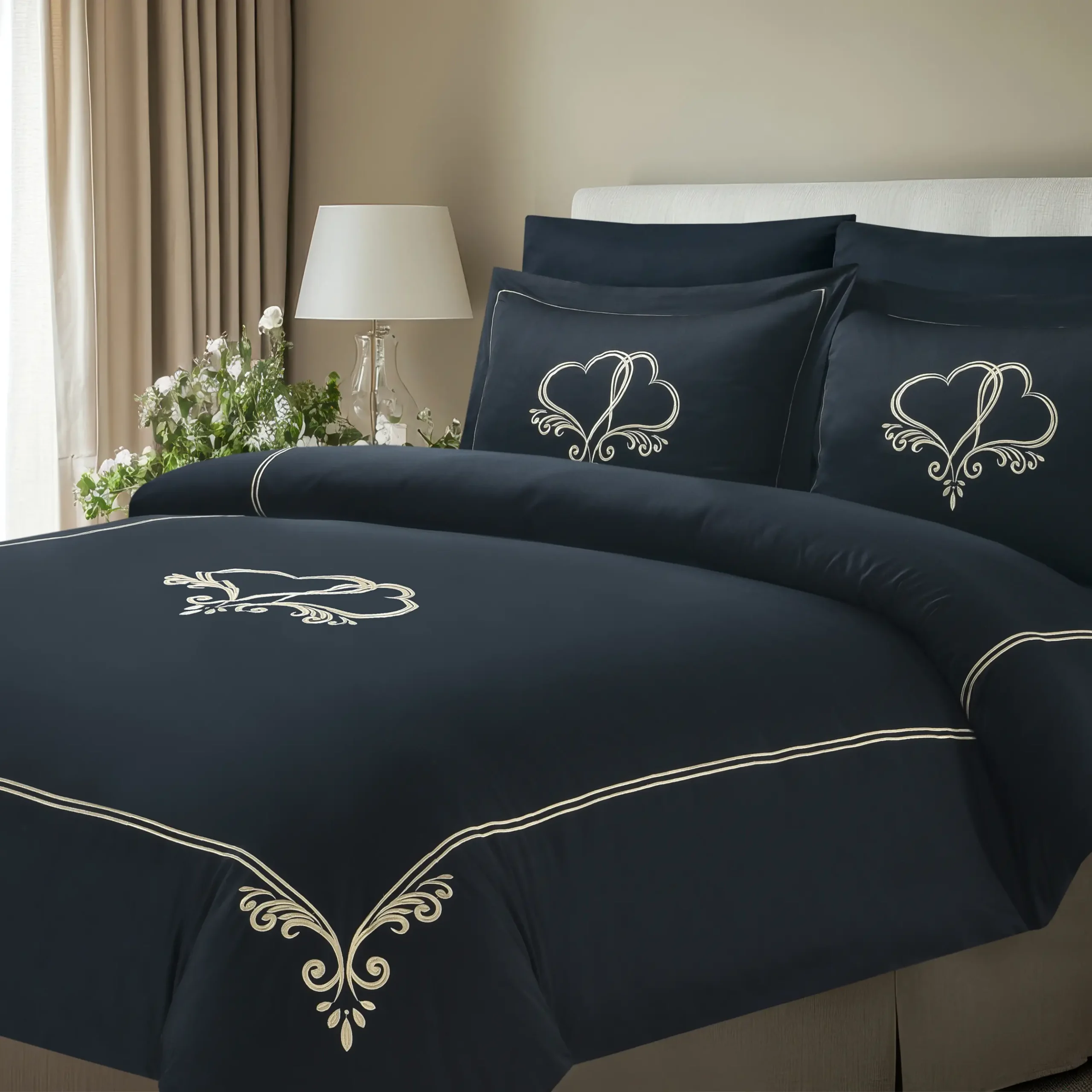 סט מצעים יוקרתי של המותג אמיטקס, שתוכנן על ידי מעצבת הבית. הסט משלב רקמה מלכותית על הציפה והציפיות, על גבי בדים בצבעים עדינים ואלגנטיים. הסט עשוי מ-100% סאטן כותנה איכותי במיוחד, עם צפיפות חוטים גבוהה של 300/TC, מה שהופך אותו לבחירה מושלמת לעיצוב חדר השינה ומעניק לו מראה חדשני ויוקרתי.